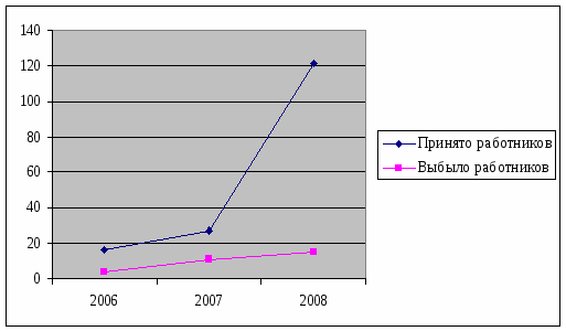 Среднесписочная численность работников на предприятии увеличилась за 2006-2008 гг. на 106 человек, или на 7,8%. Это значительный показатель для предприятия и свидетельствует о том, что предприятие расширяет свою деятельность, привлекает новых работников и может обеспечить им удовлетворительные условия труда.