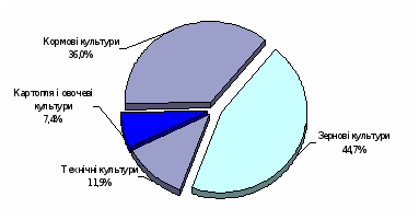 С труктура посівних площ основних сільськогосподарських культур в Сумській області