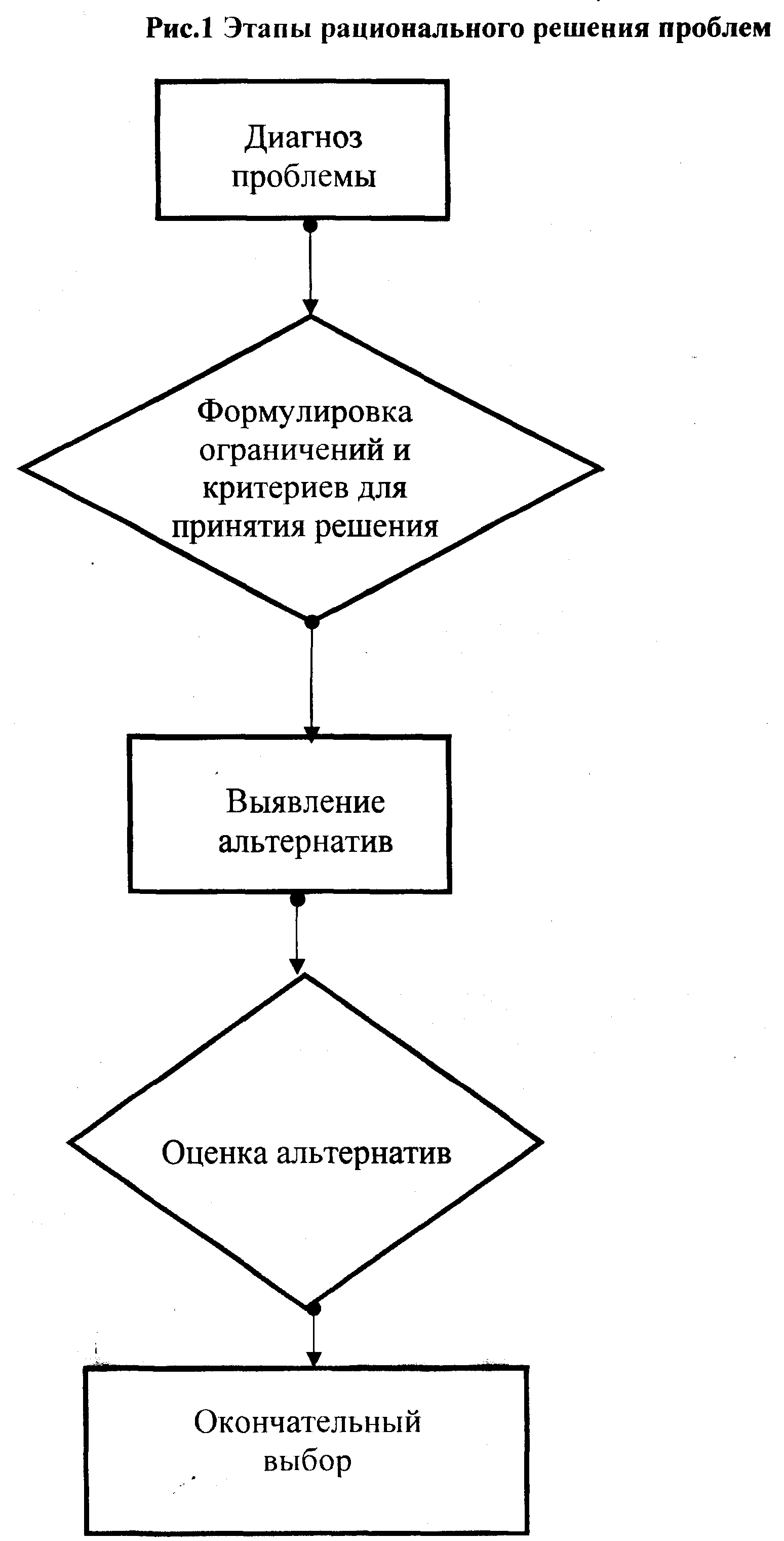 Рациональное решение - это решение, обоснованное с помощью объективного аналитического процесса. Это структурированный процесс, состоящий обычно из 5-ти шагов (рис. 1), хотя количество шагов зависит от самой проблемы.
