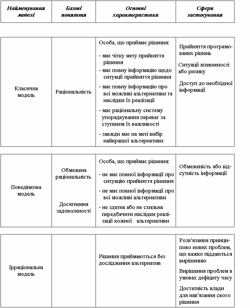 Основні моделі прийняття управлінських рішень