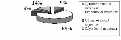 Соціальна структура персоналу підприємства – це кількісне співвідношення між різними категоріями працівників, що розрізняються за характером трудових функцій. Згідно з Державним класифікатором професій (класифікатор професій ДК 003–95) персонал поділяється на п'ять категорій: керівники; професіонали; фахівці; технічні службовці; робітники [8, 177].