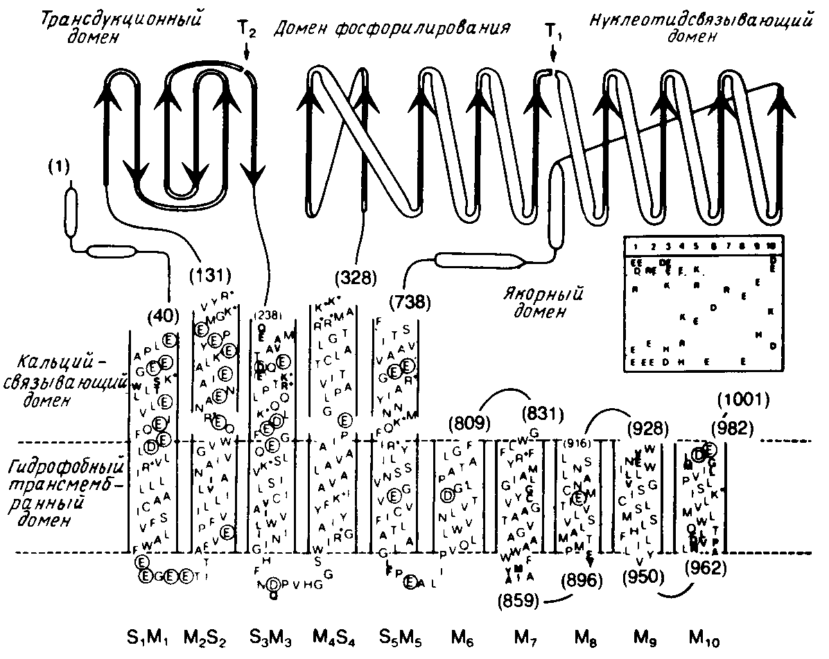 Определена аминокислотная последовательность меньшей α-субъединицы Na+/К+ - АТРазы. Было высказано предположение, что эта субъединица имеет одну или четыре трансмембранные а-спирали.