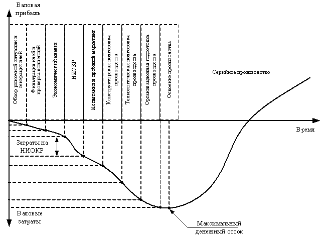 Процесс инноваций включает в себя ряд последовательных этапов: систематизация поступающих идей нововведений, формирование идеи нового продукта, анализ экономической эффективности нового продукта, создание нового продукта, тестирование нового товара, а также внедрении товара в производство. В современных условиях сложились устойчивые механизмы управления научно – технической деятельностью, отражающие особенности интеграции науки и производства, главными из которых являются: ориентация исследований и разработок на потребности рынка; усиление влияния рыночных факторов и рыночной конъюнктуры на определение целей и стратегий предприятий.