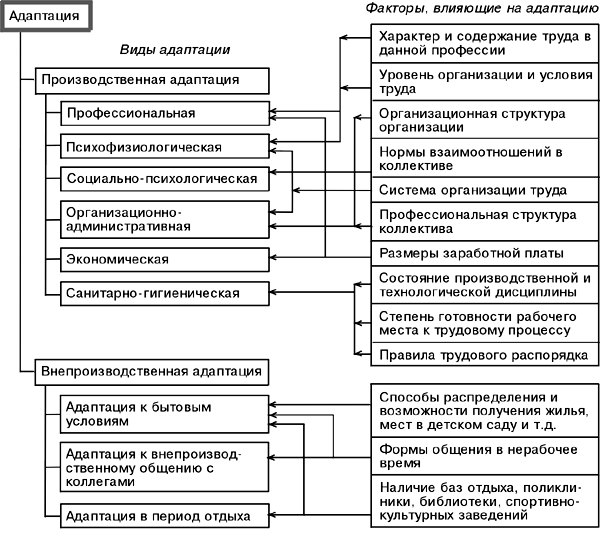 Рис. 1 - Виды адаптации и факторы, на нее влияющие