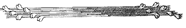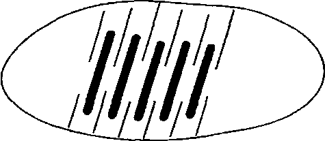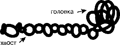 В состав толстой нити входит около 300 миозиновых молекул, а на поперечном срезе толстой нити обнаруживается 18 молекул миозина. 1у1иозиновые молекулы в толстых нитях переплетаются своими хвостами, а их головки выступают из толстой нити по правильной спирали.