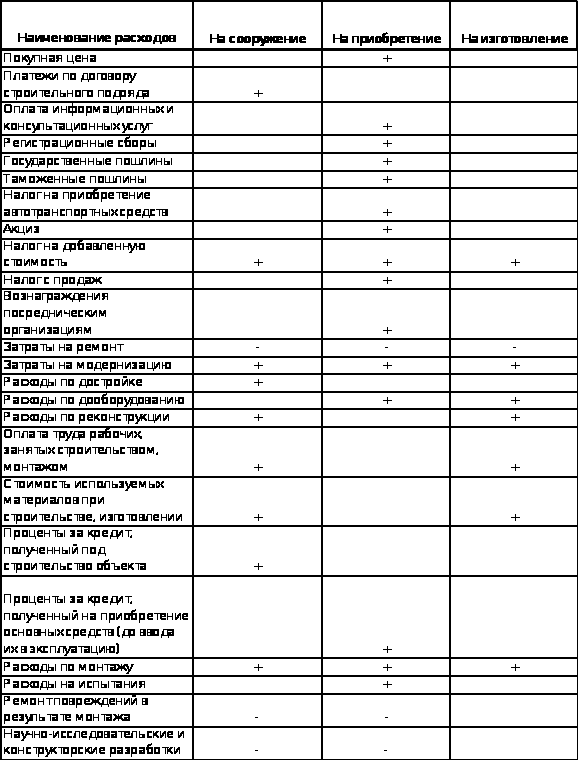 Состав капитализируемых затрат, включаемых в первоначальную стоимость основных средств