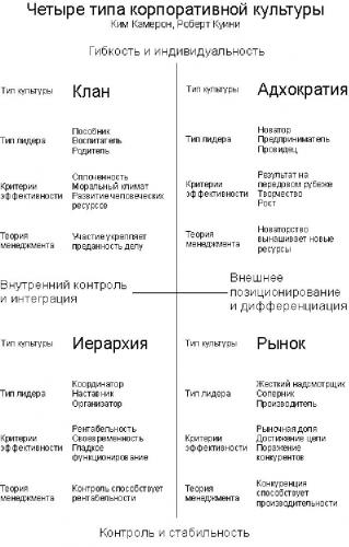 2. Типология корпоративной культуры в соответствии с К. Камероном и Р. Куинном