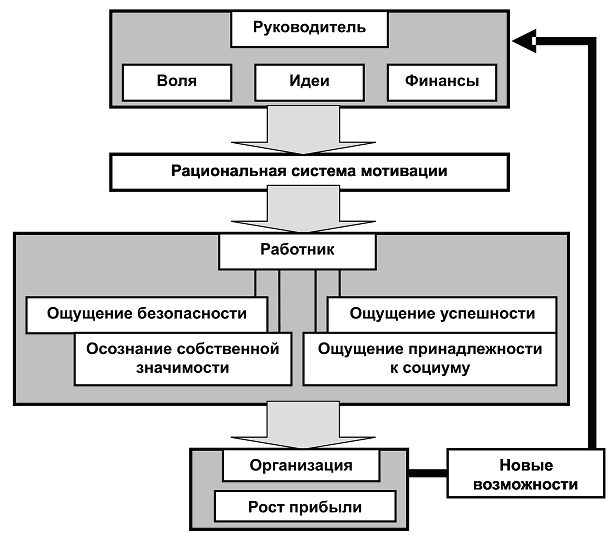 Здесь необходимо отметить, что если в качестве вознаграждения человек рассчитывает на получение денежных выплат, улучшение условий труда, предоставление ему гарантий будущей занятости, то организация получит приемлемый, "технологически обусловленный" уровень результативности. Если же результаты труда человек связывает не только с материальным вознаграждением, но и с признанием, содержанием самой работы, то организация вправе рассчитывать на результативность, превышающую технологический уровень.