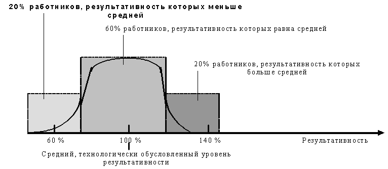 результативность лучшего работника в 2-3 раза превосходит результативность худшего;