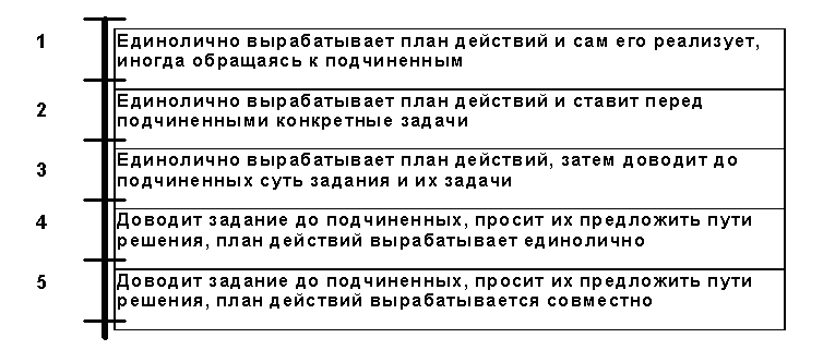 Шкала рейтингов поведенческих установок напоминает метод описательной шкалы, с той лишь разницей, что показатель оценивается не по качественным характеристикам, а по предлагаемым ситуациям управленческой деятельности (пример на рис. 2.48).