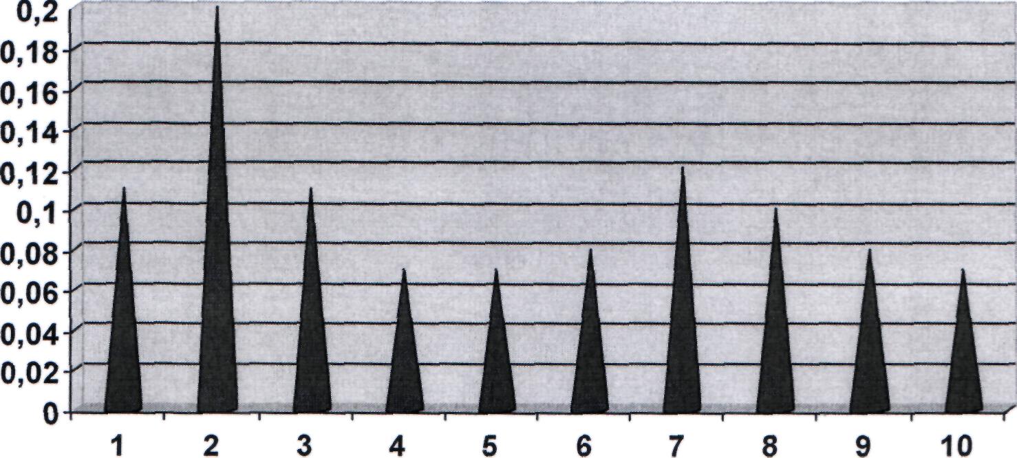 Таким образом, 30% экспертов работают согласованно. Это делается до тех пор, пока коэффициент конгордации равен более чем 0,5 (50%)