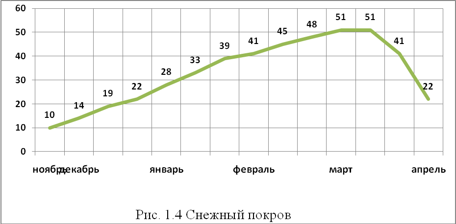 Величина снежного покрова не всегда благоприятствует посевам озимых, очень часто морозы начинаются когда еще толщина снежного покрова не достигла необходимой величины, для того чтобы не повредились всходы озимых культур (рис. 1.4).
