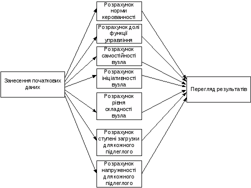 Для автоматизації процесу оцінки ефективності організаційного управління необхідно щодня слідкувати за керівниками та їхніми підлеглими на протязі певного проміжку часу, збираючи всю необхідну інформацію. При аналізі інформації вхідні дані можна коректувати, для того, щоб визначити найкращу структуру організації.