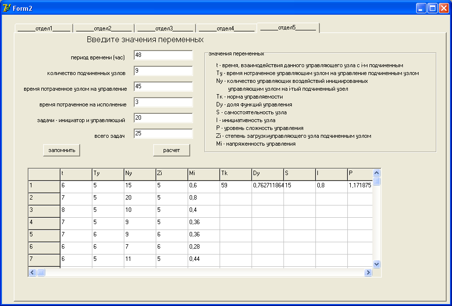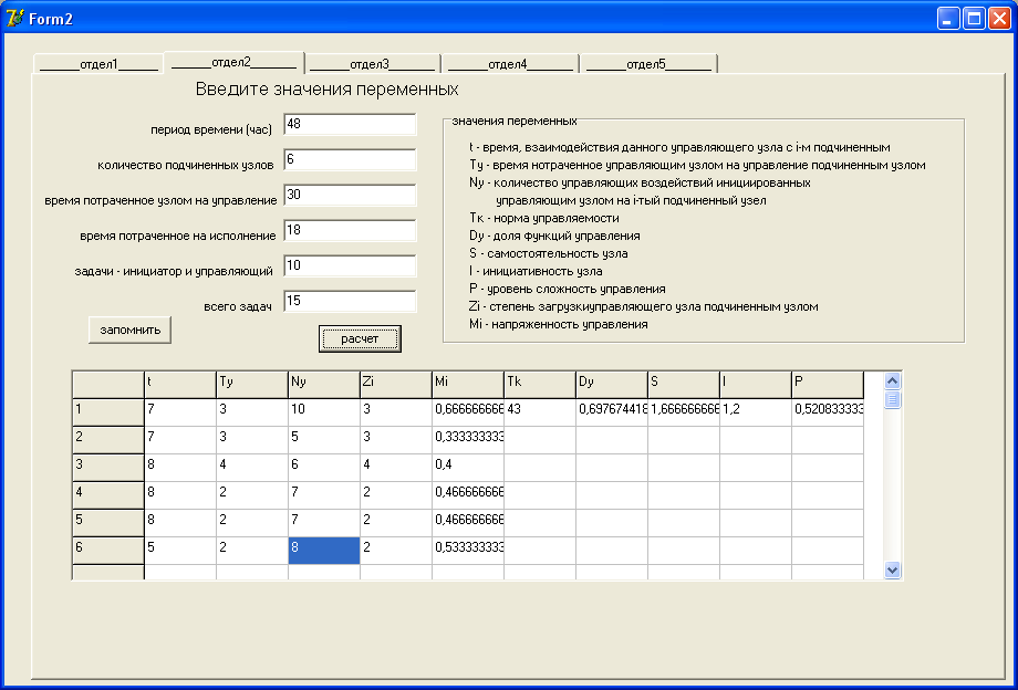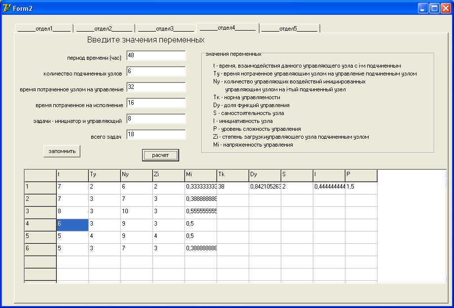Розроблене програмне забезпечення призначене для розрахунку показників, які дозволяють у повній мірі оцінити ефективність організаційного управління. Основними характеристиками даного програмного продукту (ПП) є: