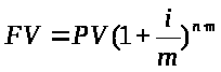 Отже, якщо m – кількість разів нарахування складного процента протягом року, тоді майбутня вартість FV депозиту РV за ставки процента i після п років становить [16]:
