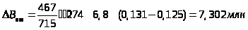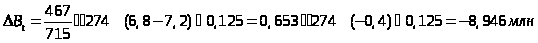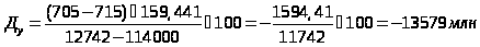 Количественная оценка прироста факторов, влияющих на величину прибыли (млн.руб)