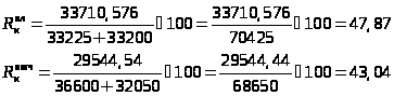 Общий прирост рентабельности (R к) определяется суммированием по факторам (результаты расчетов по формулам (47-49)).
