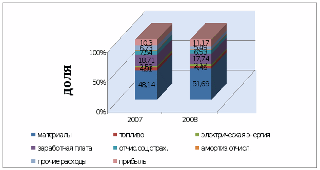 ПРИЛОЖЕНИЕ Б Анализ затрат на производство товарной продукции за 2008г., тыс. руб.