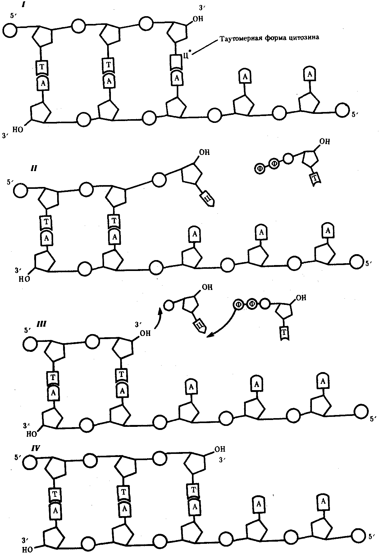 Особенностью ДНК-полимеразы является ее неспособность начать синтез новой полинуклеотидной цепи путем простого связывания двух нуклеозидтрифосфатов: необходим 3'-ОН-конец какой-либо полинуклеотидной цепи, спаренной с матричной цепью ДНК, к которой ДНК-полимераза может лишь добавлять новые нуклеотиды. Такую полинук-леотидную цепь называют затравкой или праймером.