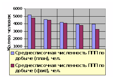 В результате анализа динамики численности и трудоемкости работ наиболее трудоемкими процессами являются очистные работы, подготовительные работы, работы на подземном транспорте и работы на поверхности (за счет чрезмерно увеличенного штата сотрудников на поверхности). Спланирован план добычи угля на 1998 год, который составил 11941,521 тонн/сутки и после внедрения мероприятий по снижению трудоемкости план на 1998 год составит 2175,993 тонн/сутки. Спланирована численность промышленно-производственного персонала по добычи угля, которая составила бы при равных прочих условиях 3372 человека (рост на 3,09% по отношению к базовому году). Выработка на одного работника промышленно-производственного персонала по добыче угля, в результате внедрения мероприятий по снижению трудоемкости производства, повысится на 356,97 грн./месяц (7,14 тонн/месяц), что на 58,35% выше, чем в базовом предыдущем году.