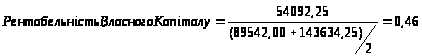 Рентабельність власного капіталу показує, скільки грошових одиниць чистого прибутку (0,46) заробила кожна грошова одиниця, вкладена власниками компанії.
