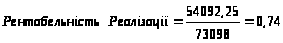 Рентабельність реалізації підприємства показує, що 0,74 грошових одиниць чистого прибутку принесла фірмі кожна грошова одиниця реалізованої продукції. Чим вищий цей показник, тим краще.