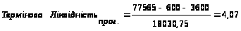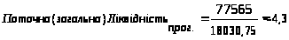 Коефіцієнт загальної ліквідності у базовому періоді склав 2,67, що є нормою згідно з загальноприйнятими міжнародними стандартами. Цей же коефіцієнт у прогнозному періоді склав 4,30. Таке перевищення (майже в 2 рази) є небажаним, оскільки може свідчити про нераціональну структуру капіталу.