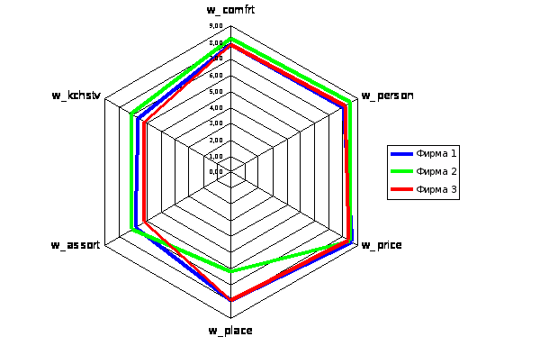 В данной работе была проведена оценка конкурентоспособности по методу комплексной оценки товарных систем. Этот метод был выбран из всех существующих, так как он основывается на опросе потребителей и позволяет наиболее объективно оценить сложившуюся ситуацию на рынке. К тому же он является комплексным и позволяет всесторонне оценить деятельность фирмы.