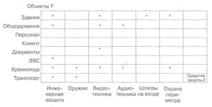 И наконец, развертка YZ. преследует цель подбора конкретных средств защиты применительно к характеру защищаемого объекта (рис. 4).