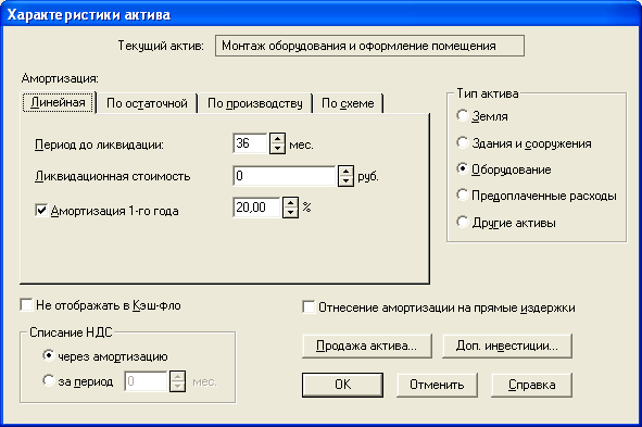 Амортизация начисляется по линейному методу с периодом амортизации равным периоду производства (рисунок 9).