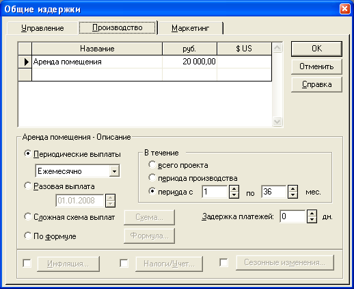 Благодаря названной программе мы сумеем аналитически организовать работу фирмы, отметить каждый этап в ее создании и развитии, определить издержки подготовительного этапа в календарном плане и проследить их на протяжении реализации проекта с учетом налогов и инфляции, рассчитать предполагаемый уровень сбыта, и увидеть какова при этом окажется прибыль от реализации.