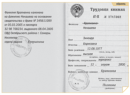 Трудовая книжка — основной документ о трудовой деятельности гражданина содержит сведения о возрасте, специальности, квалификации гражданина, приеме на работу, переводе на другую постоянную работу, увольнении. По ней определяется трудовой стаж гражданина, как общий и специальный для пенсионного его обеспечения, так и непрерывный для оплаты больничного листа при общем заболевании. При приеме на работу трудовая книжка сдается администрации и хранится как денежный документ (в сейфе), а на руки работнику выдается в день его увольнения. В нее вносятся все сведения о поощрениях работника (дисциплинарные взыскания, кроме увольнений, не отмечаются, так как действуют год).