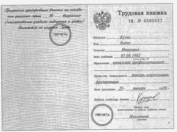 Трудовая книжка (рис. 36, 37) – основной документ, подтверждающий рабочий стаж работника. Трудовые книжки на работников ведут на предприятии не зависимо от формы собственности.