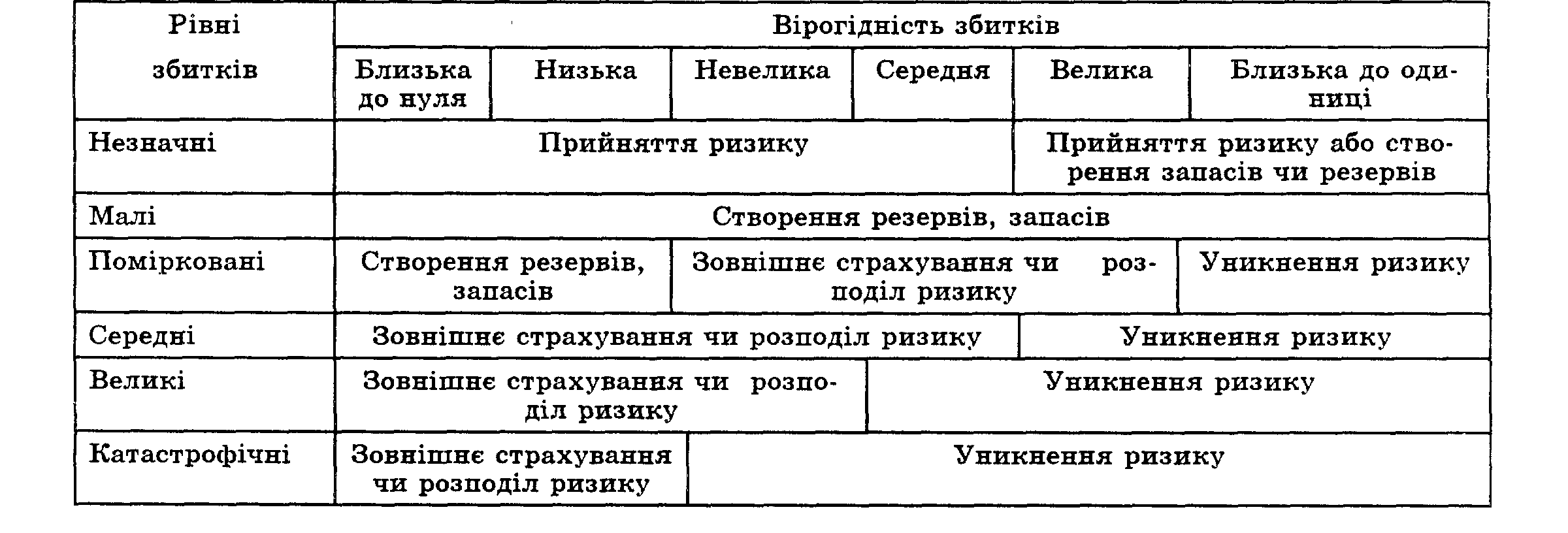 Вибір конкретного переліку методів управління ризиком залежить від ступеня ризику, який притаманний діяльності конкретного торговельного підприємства, а також від ризик-позиції його керівництва.