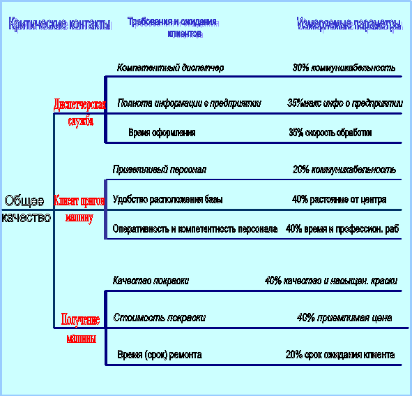 На восприятие качества с точки зрения клиента особенно сильно влияют лишь отдельные моменты обслуживания - так называемые критические контакты между клиентом и персоналом предприятия. Выявление и пути решения которых, лежат в основе клиентски-ориентированных стандартов обслуживания и внедрение их в ООО «Альянс-Моторс» является целью моей курсовой работы.