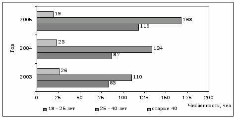 Рис. 2. Динамика численности ООО "Мегатавр" в 2003 – 2005 гг.