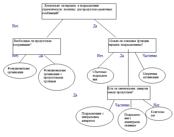 1. Желательно ли передать в подразделения стратегическую политику для продуктово-рыночных комбинаций?