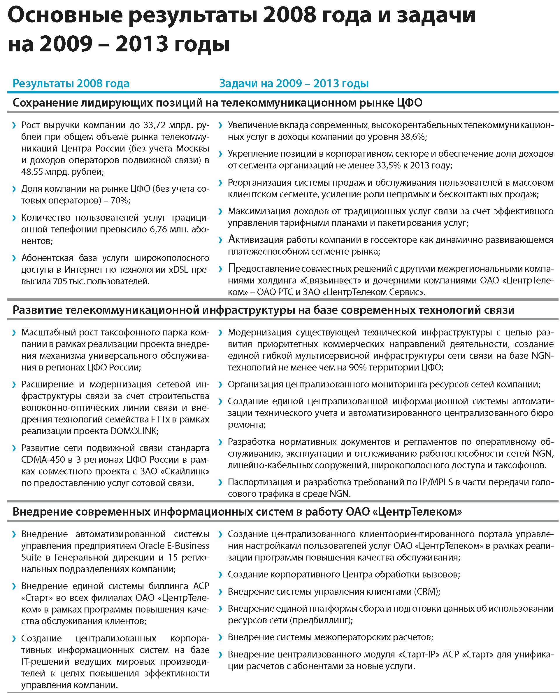› принимать участие в создании новых рынков, внедряя новые инфокоммуникационные технологии в ЦФО;