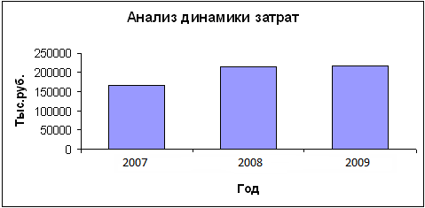 Темп роста расходов предприятия рассчитан в 2008г на уровне 130,1%, а в 2009г.-101,1%. Себестоимость услуг в анализируемом периоде увеличилась с 165591 тыс.руб. до 217786 тыс.руб.