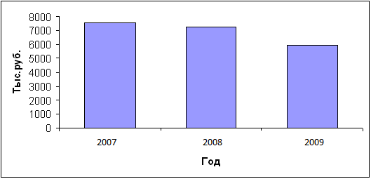 Исследование основных технико-экономических показателей позволило сделать следующие выводы. В анализируемом периоде наблюдаются изменения выручки от реализации услуг. Так, в 2008г. выручка от реализации увеличилась на 53680 тыс.руб. и составила 216813 тыс.руб., при этом темп роста составил 132,9%. В 2009г. данный показатель вырос на 4336 тыс.руб., достигнув уровня 221149 тыс.руб. Прирост выручки от реализации составил 2%.