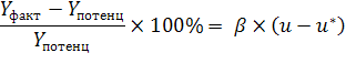 где Y фактический объем производства; Y * потенциальный ВВП; и фактический уровень безработицы; и* естественный уровень безработицы; эмпирический коэффициент чувствительности ВВП к динамике циклической безработицы.