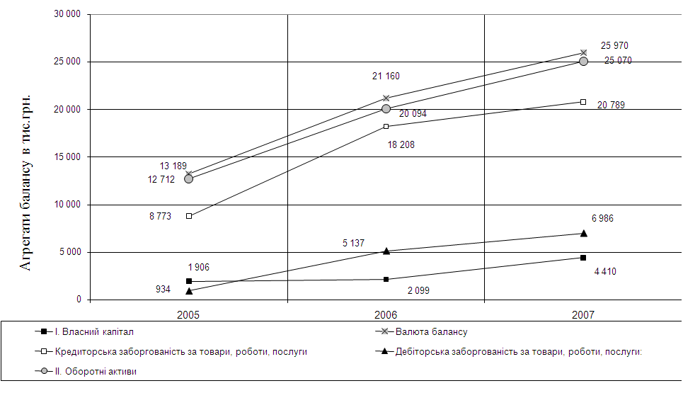 Рис.А.1. – Агрегати балансу підприємства «Укрмед-Дентал» за 2005 -2007 роки