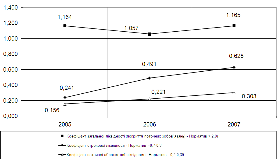 Рис.А.3. – Динаміка показників ліквідності підприємства «Укрмед-Дентал» за 2005 -2007 роки