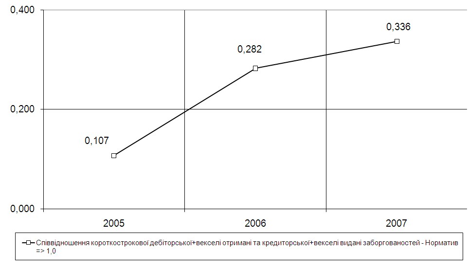 розбалансованість рівнів дебіторської та кредиторської заборгованості, при чому замість кредиторська заборгованість в 6-9 разів перевищує кредиторську, тобто у підприємства є проблеми з розрахунками за імпортні товари з закордонними постачальниками.