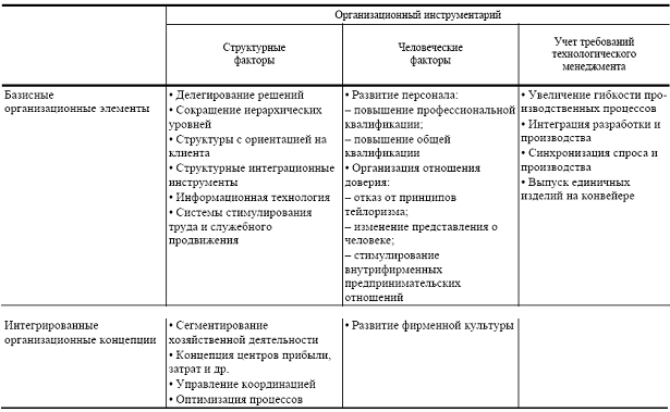 Реструктуризация обычно приводит к ликвидации убыточных производств, созданию новых функциональных служб, хозяйственному обособлению технологически мало связанных друг с другом подразделений, концентрации ресурсов и усилий на стратегически перспективных направлениях.