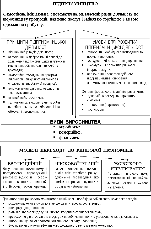 Для підприємництва, як методу ведення господарства головною умовою є самостійність і незалежність суб'єктів господарювання, наявність у них визначеної сукупності свобод і прав - на вибір виду підприємницької діяльності, по формуванню виробничої програми, на вибір джерел фінансування, доступу до ресурсів, по збуті продукції, установленню на неї цін, розпорядження прибутком і т.д. Самостійність підприємця варто розуміти в тому змісті, що над їм немає керівного органа, що вказує, що робити, скільки витрачати, кому й але якій ціні продавати і т.д. Але підприємець увесь час знаходиться в залежності від ринку, від динаміки попиту та пропозиції, від рівня цін, тобто від сформованої системи товарно-грошових відносин.