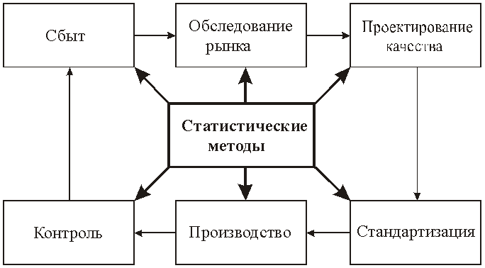 Контроль качества, базируясь на статистических методах и развиваясь циклически, проходит через определенные этапы (рис.1).