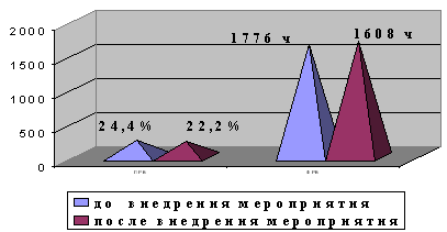 Проведенный анализ показал, что негативное влияние на использование трудовых ресурсов предприятия оказывает наличие значительных потерь рабочего времени в простоях. В нашем случае основное направление улучшения использования рабочего времени состоит в ликвидации ПРВ этого вида.