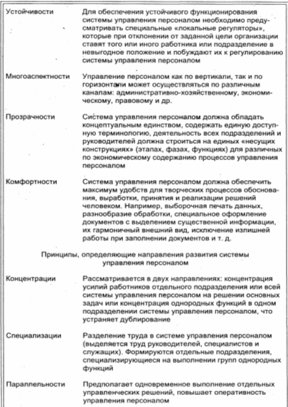 Управление кадрами в рамках предприятия, будучи неотъемлемой частью его хозяйственной политики, имеет стратегический и оперативный аспекты. Организация управления персоналом вырабатывается на основе концепции развития предприятия, состоящей из трех частей: производственной, финансово-экономической и социальной (кадровая политика предприятия). Принципы построения системы управления персоналом в организации (прил. Б)