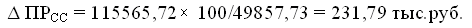 Общий прирост прибыли предприятия определяется по формуле (8): Δ ПРпт = 231,79 + 25286,63 = 25518,42 тыс.руб.